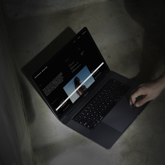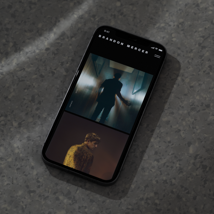 The logo is placed in a light blur that smoothly transitions from letter to letter. When the blur appears, we perceive the object as a memory to which Brandon's works refer. Although a memory is something personal, over time it acquires an indistinct contour and becomes open to another viewer. This openness is expressed in the spacing between the letters, as if inviting us into Brandon Mercer's world.