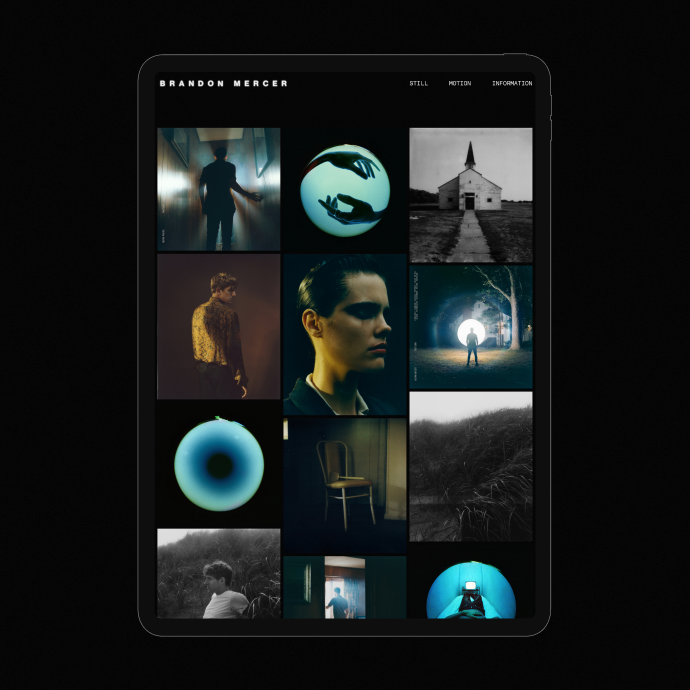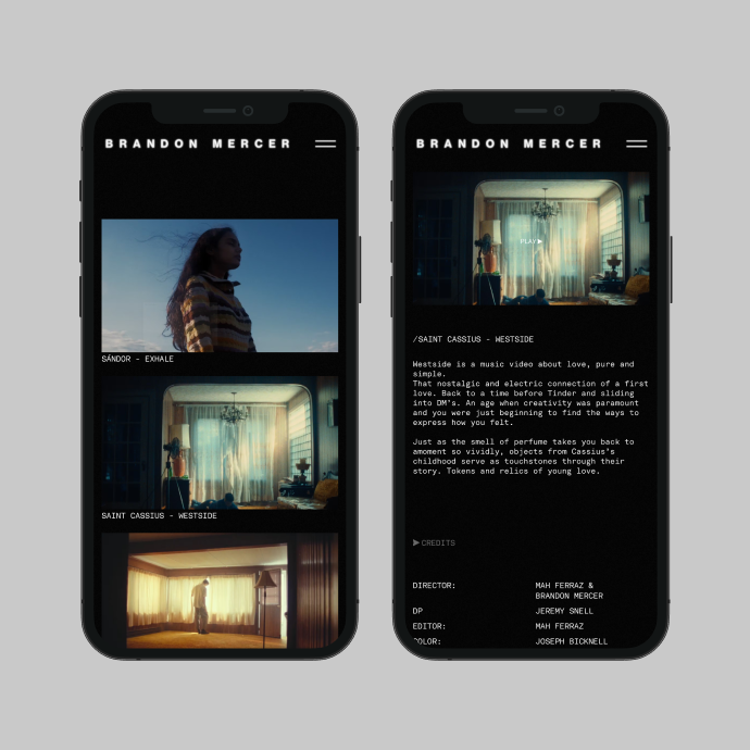 The website's identity often features a dreamy effect achieved through a dark background and blurring on hover. Custom navigation elements help the user focus on the works of Brandon by fixing the cursor's focus. The site's loader, stylized as a VHS interface, immediately sets the user's mood.
