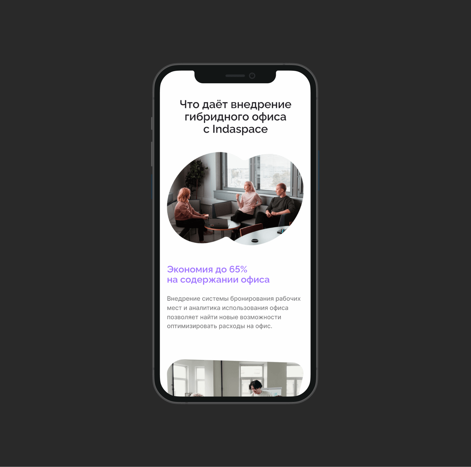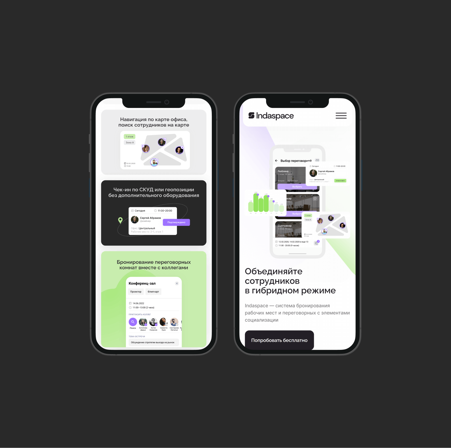 The identity of Indaspace was based on the idea of visualizing the process of interaction between employees in the office. The logo carries the idea of combining two modes of operation: "from home" and "from the office". In addition, its shape resembles a handshake, which symbolizes the Indaspace idea of employees interacting with each other in a friendly and happy office environment.